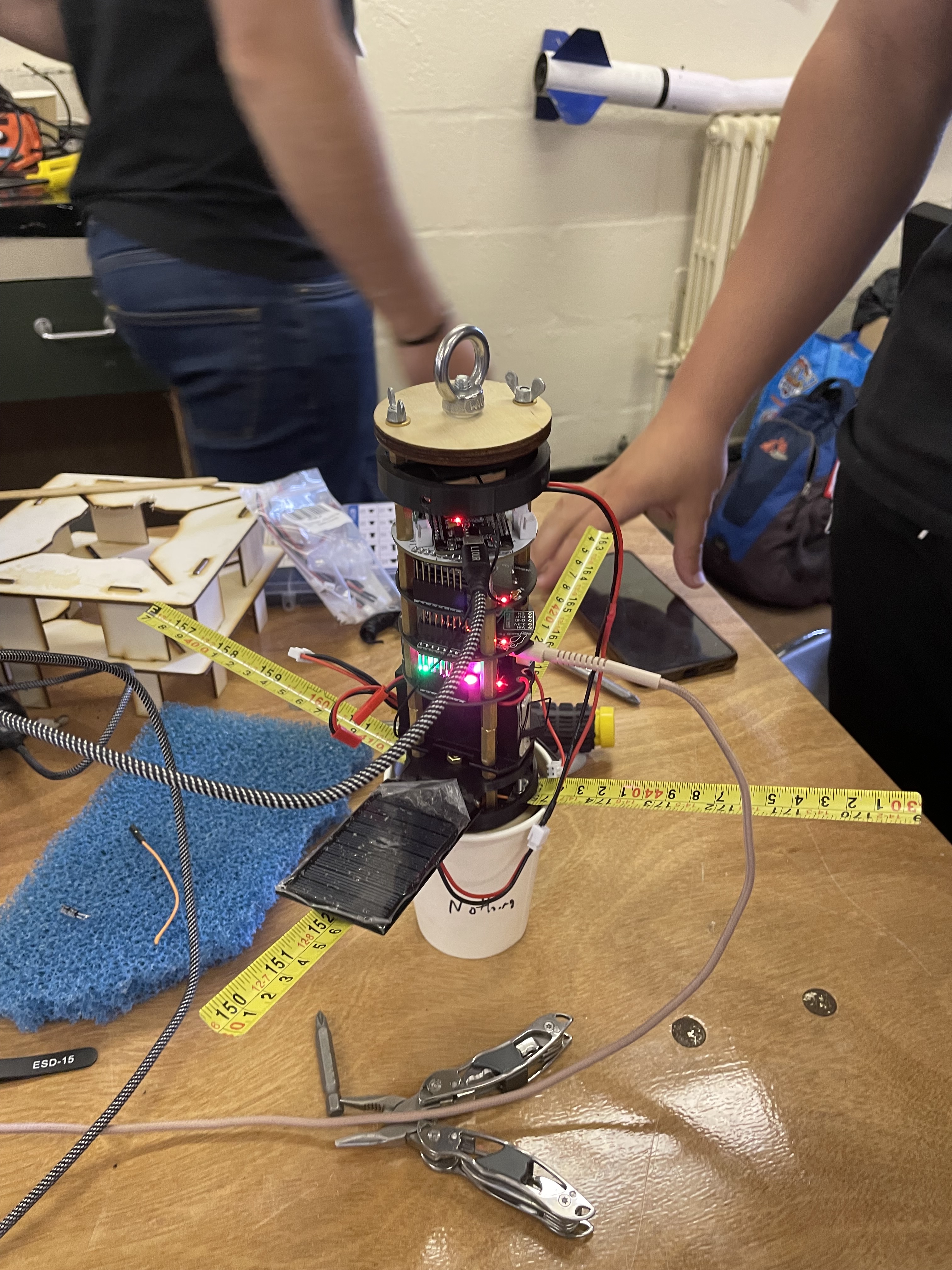 The CanSat had two onboard computers. A powerful Teensy 4.0 to handle the sensor data and storage and an ESP 32 receives this data and transmits from our onboard radio.